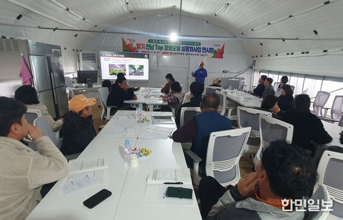 함평군은 지난 19일 전남농업기술원과 함께 대동면 ‘나비랑 딸기랑’ 김영각 농장에서 ‘전남 딸기 TOP 경영모델 실용화 사업 연시회’를 개최했다고 23일 밝혔다. 연시회는 함평군농업기술센터가 주관하고 전남농업기술원이 주최했다.