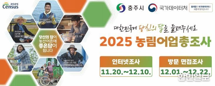 한민일보 서울포커스 김다남 기자 | 충주시는 오는 12월 22일까지 한 달여간 ‘2025년 농림어업총조사’를 실시한다고 밝혔다.