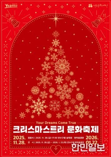한민일보 서울포커스 백진욱 기자 | 연수구가 주최하고 (재)연수문화재단이 주관하는 ‘2025 크리스마스트리 문화축제’가 내년 1월 22일까지 구청 1층 송죽원과 한마음광장, 연수구 제2청사에서 열린다.
