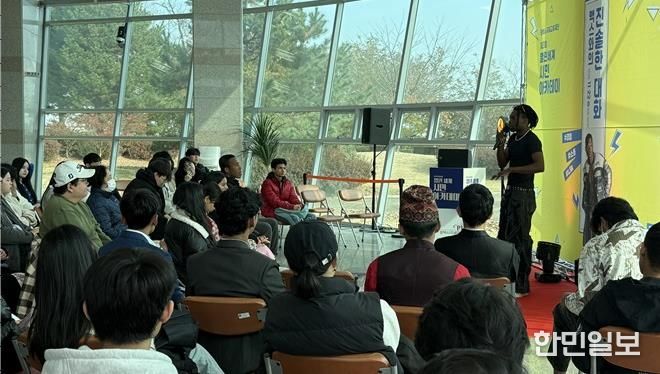 맥스는 ‘맥스와의 진솔한 대화’를 주제로, 다른 외모로 한국에서 살아온 경험, 성장 과정에서 겪은 어려움과 즐거웠던 순간, 비자 연장 등 체류 과정의 고민 등을 시민 및 유학생들과 자연스럽게 소통했다.