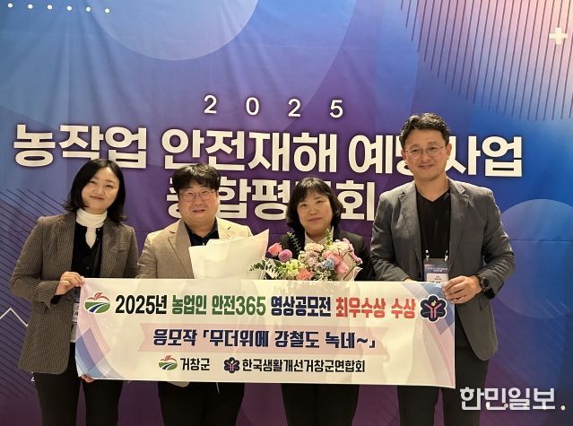 한민일보 서울포커스 김서윤 기자 | 거창군은 지난 20일 농촌진흥청이 주최한 ‘2025년 농작업 안전재해 예방사업’ 종합 평가회에서 안전 365 캠페인 영상공모전에 한국생활개선거창군연합회(회장 윤진미)와 관의 협력으로 만든 영상이 최우수상을 수상했다고 밝혔다.