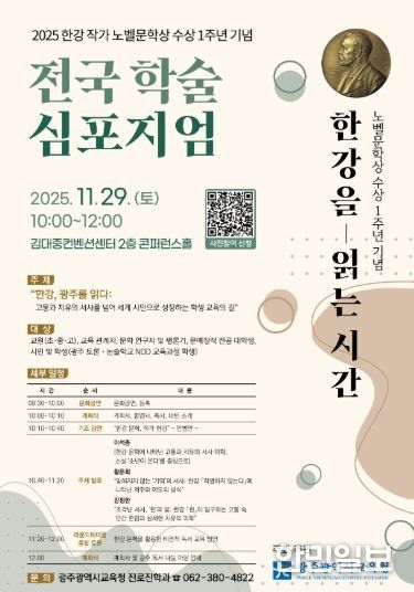 한민일보 서울포커스 박용남 기자 | 광주시교육청은 오는 29일 오전 10시 서구 김대중컨벤션센터 콘퍼런스홀에서 한강 작가의 노벨문학상 수상 1주년을 기념하는 ‘전국 학술 심포지엄’을 개최한다.