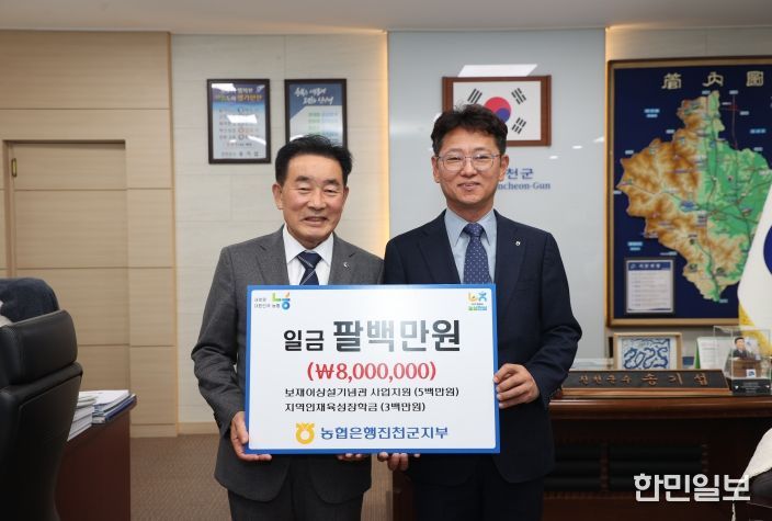 한민일보 서울포커스 김다남 기자 | 농협은행 진천군지부(지부장 유호종)는 24일 지역 인재 양성과 문화 진흥을 위해 진천군장학회에 300만원, 진천문화원에 500만원, 총 800만원의 기탁금을 전달했다.