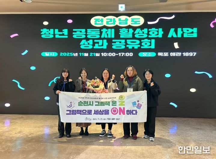 한민일보 서울포커스 임광현 기자 | 순천시는 지난 21일 목포 해관1897에서 열린 2025 전남형 청년공동체 활성화 사업 성과공유회에서, 순천시 청년공동체 ‘그림책 온(ON)’이 장려상을 수상했다고 밝혔다.