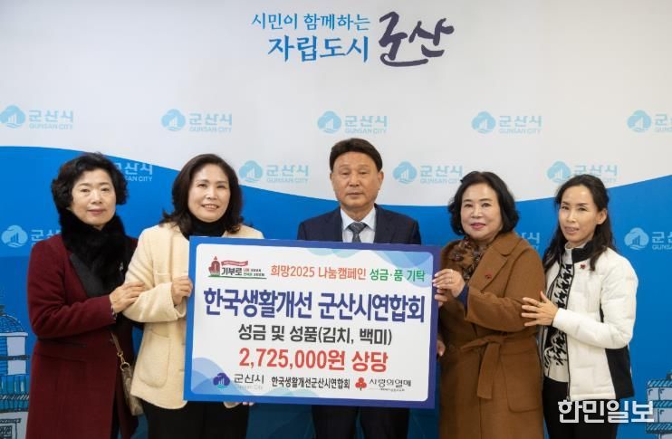 한민일보 서울포커스 김용택 기자 | 한국생활개선군산시연합회는 25일 저소득 취약계층을 위한 성금 200만 원과 함께 직접 담근 김치 40kg, 농사지은 백미 50kg을 군산시 내 사회복지시설에 전달했다.