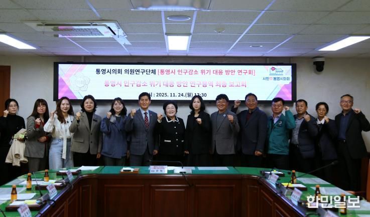한민일보 서울포커스 김서윤 기자 | 통영시의회 의원연구단체 '통영시 인구감소 위기 대응 방안 연구회'는 지난 24일 통영시의회 특별위원회실에서‘통영시 인구감소 위기 대응 방안 연구용역’에 대한 최종보고회를 개최했다.