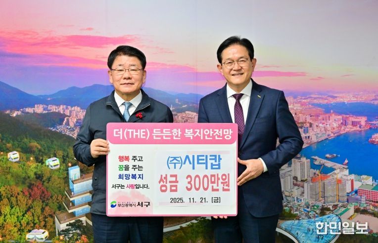 한민일보 서울포커스 임광현 기자 | ㈜시티캅(대표 정현돈)은 지난 11월 21일 지역 사회 취약계층을 돕기 위해 성금 300만 원을 부산 서구(구청장 공한수)에 기탁했다.