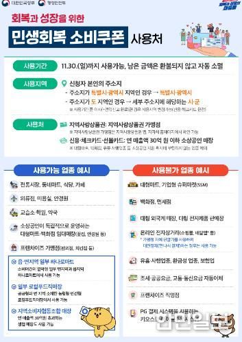시 관계자는 “이번 소비쿠폰 지원사업이 경기 침체로 어려움을 겪는 지역 상권의 매출 증대와 골목경제 활성화에 실질적인 마중물 역할을 했다”면서 “지원금이 소멸되지 않도록 11월 30일까지 반드시 사용해 지역 소상공인들에게 힘을 실어주길 바란다”고 강조했다.