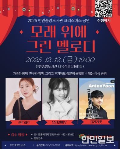 한민일보 서울포커스 황준형 기자 | 천안시 중앙도서관은 연말을 맞아 12월 한 달간 다채로운 문화공연과 전시를 선보인다고 28일 밝혔다.