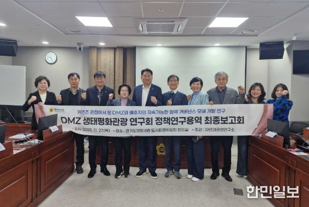 한민일보 서울포커스 김윤이 기자 | 경기도의회 의원연구단체인 DMZ생태평화관광 연구회(회장 오준환 의원)는 지난 27일 경기도의회 도시환경위원회 회의실에서 '커먼즈 관점에서 본 DMZ와 배후지의 지속가능한 협력 거버넌스 모델 개발 연구' 용역 최종보고회를 개최했다.
