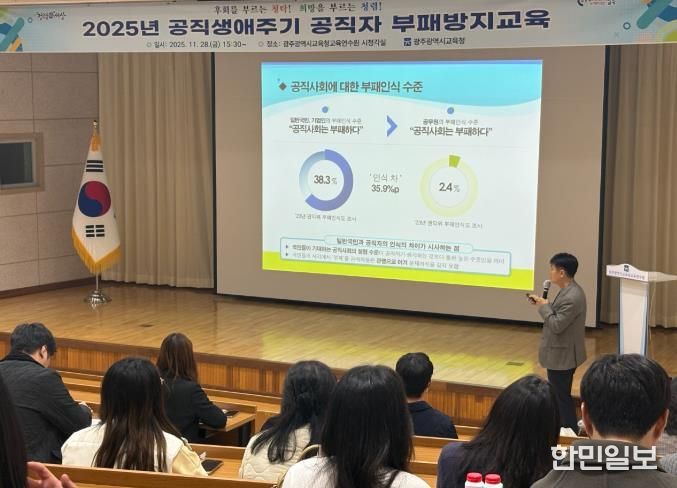 한민일보 서울포커스 박용남 기자 | 광주시교육청은 28일 광주시교육청교육연수원 시청각실에서 ‘공직생애주기 공직자 부패방지교육’을 실시했다.