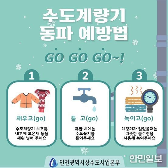 한민일보 서울포커스 유창렬 기자 | 인천광역시 상수도사업본부는 겨울철 한파로 인한 수도시설 누수·동파 등을 예방하고, 시민들에게 24시간 안정적으로 수돗물을 공급하기 위해 내년 3월 15일까지 급수대책을 추진한다고 1일 밝혔다.