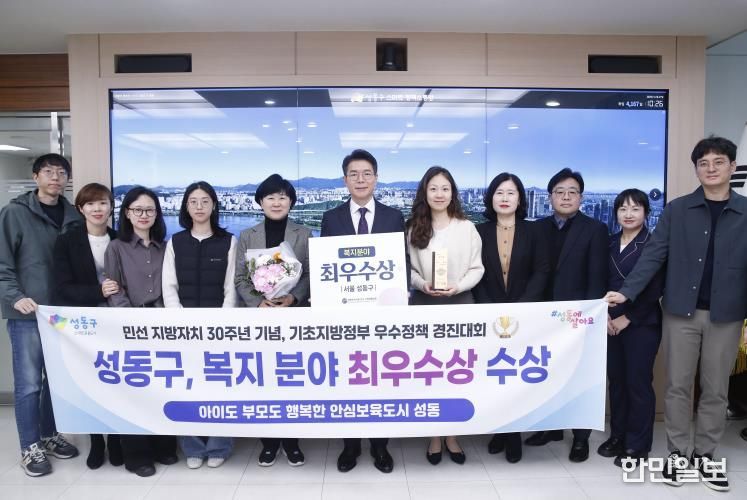 한민일보 서울포커스 임광현 기자 | 서울 성동구가 대한민국시장·군수·구청장협의회가 개최한 '2025 기초지방정부 우수정책 경진대회’에서 복지 분야 최우수상을 수상했다고 밝혔다.