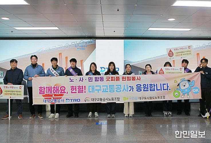 김기혁 대구교통공사 사장은 “공사는 안전하고 편리한 대중교통 서비스를 제공하는 데 그치지 않고, 지역사회에 실질적 도움이 되는 사회공헌 활동을 지속 확대해 나가겠다”며, “혈액 수급 위기 극복을 위해 앞으로도 시민들과 함께 생명 나눔 활동을 꾸준히 이어갈 것”이라고 말했다.