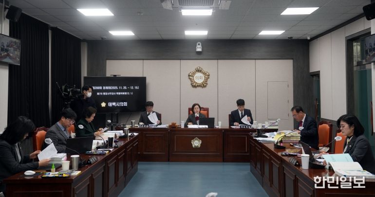 한민일보 서울포커스 임경복 기자 | 태백시의회는 1일 제288회 태백시의회 제2차 정례회 제7차 행정사무감사특별위원회(위원장 최미영)를 개최하고, 공공사업과, 태백시시설관리공단, 건축과, 건설과, 예산정책실 5개 부서에 대한 행정사무감사를 실시했습니다.