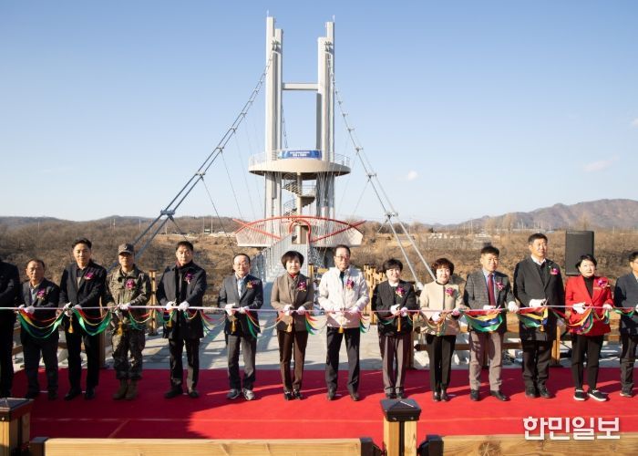 이번 사업은 행정안전부의 접경지역 발전지원사업에 포함되어 총사업비 136억 원을 투입해 2024년 1월 착공, 지난달 27일 준공됐다. 보도현수교(출렁다리) 길이 300m, 폭 1.5m, 진입도로 길이 200m, 폭 6m, 휴게쉼터 1,855㎡, 주차장 75면을 조성해 방문객들에게 최적의 편의를 제공하고 있다.