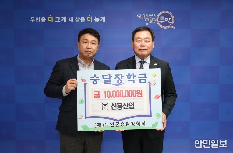 한민일보 서울포커스 박용남 기자 | 전남 무안군은 지난 1일 지역인재 육성을 위해 ㈜신흥산업이 장학금 1천만 원을, 청솔수산 윤낙진 대표가 장학금 1백만 원을 각각 (재)무안군승달장학회에 기탁했다고 밝혔다.