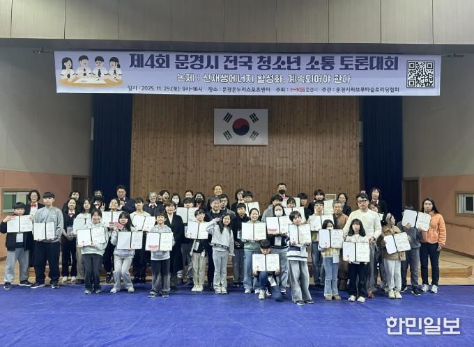 한민일보 서울포커스 김봉순 기자 | 문경시는 11월 29일 문경시온누리스포츠센터에서 전국 초·중학생 등 130여 명이 지원한 가운데 ‘제4회 문경시 전국 청소년 소통 토론대회’를 성황리에 열었다.