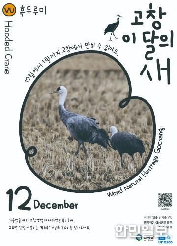 한민일보 서울포커스 박용남 기자 | 고창군이 12월 ‘고창갯벌 이달의 새’로 멸종위기 철새인 흑두루미(학명 Grus monacha)를 선정하고 겨울철 고창갯벌의 생태적 중요성을 알리기 위한 캠페인을 진행한다고 2일 밝혔다.