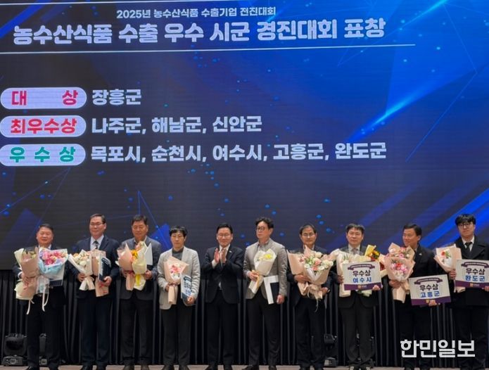 한민일보 서울포커스 임광현 기자 | 여수시는 지난 11월 28일 전라남도에서 실시한 ‘2025년 농수산식품 수출기업 전진대회’ 우수 시군 평가에서 우수상을 수상했다고 밝혔다.