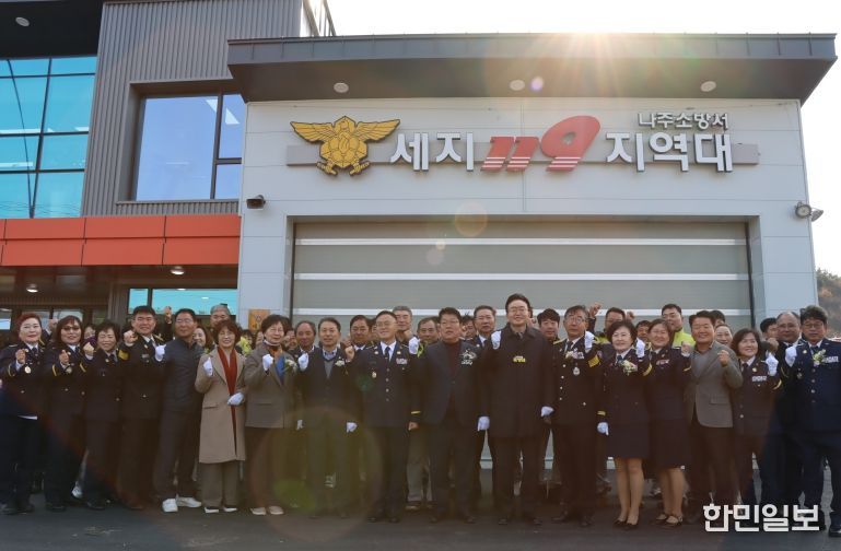 한민일보 서울포커스 임광현 기자 | 나주소방서(서장 신향식)는 12월 2일 세지119지역대 신청사에서 윤병태 나주시장, 최명수 도의원 등이 참석한 가운데 지역 안전 강화를 위한 뜻깊은 행사를 개최했다. 이날 행사에서는 신청사 개청식과 함께 세지면 전담의용소방대 발대식이 진행되며 지역 대응체계의 새로운 전환점을 마련했다.
