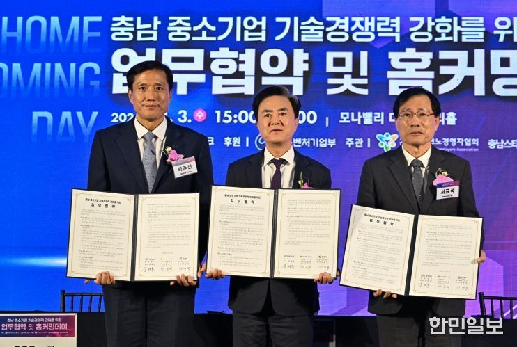 한민일보 서울포커스 임철현 기자 | 충남도는 3일 아산 디바인밸리에서 ‘충남 중소기업 기술 경쟁력 강화를 위한 업무협약식’을 개최했다.