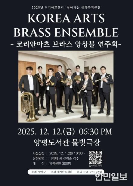 한민일보 서울포커스 차재만 기자 | 양평군은 지역 주민에게 품격 있는 문화 향유 기회를 제공하고자 오는 12월 12일 양평도서관 물빛극장에서 ‘연말 맞이 찾아가는 문화복지 공연’을 개최한다고 밝혔다.