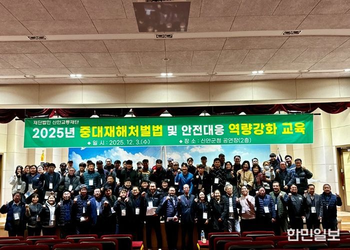 한민일보 서울포커스 임광현 기자 | (재)신안교통재단은 정부의 국민 안전 최우선 방침에 적극적으로 부응하고 중대재해를 사전에 예방하기 위해, 지난 12월 3일 신안군청 공연장에서 2025년도 하반기 역량강화 교육을 실시했다고 밝혔다.