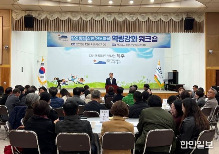 한민일보 서울포커스 김다남 기자 | 서귀포시는 4일 서귀포시청 본관 2층 너른마당에서 탄소중립 실천 선도마을(6개마을) 이끄미 등 100여 명을 대상으로 탄소중립 실천 선도마을 역량강화 워크숍을 개최했다.