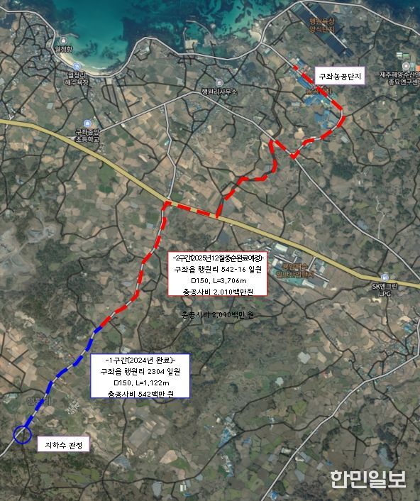 이번 사업은 2024년 6월에 착수해 제주시 구좌읍 행원리의 지하수관정에서 구좌농공단지까지 이어지는 노후 관로 구간을 전면 교체하는 내용을 포함하고 있으며, 총 사업비는 25억 5,000만 원이 투입됐다.