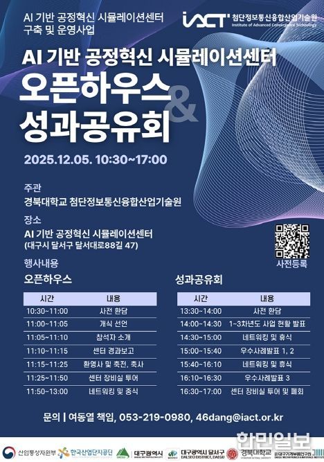 한민일보 서울포커스 임철현 기자 | 대구광역시는 12월 5일 지역 중소·중견기업의 인공지능(AI) 및 시뮬레이션 기술 활용을 지원하기 위한 ‘AI기반 공정혁신 시뮬레이션센터’의 오픈하우스 및 성과공유회를 개최했다.
