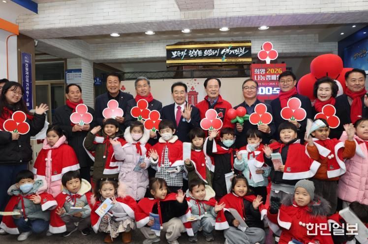 한민일보 서울포커스 김다남 기자 | 충북 진천군은 5일 진천군청 중앙현관에서 충북사회복지공동모금회와 함께 ‘희망2026나눔캠페인’ 사랑의 온도탑 제막식과 현장순회모금 행사를 개최했다.