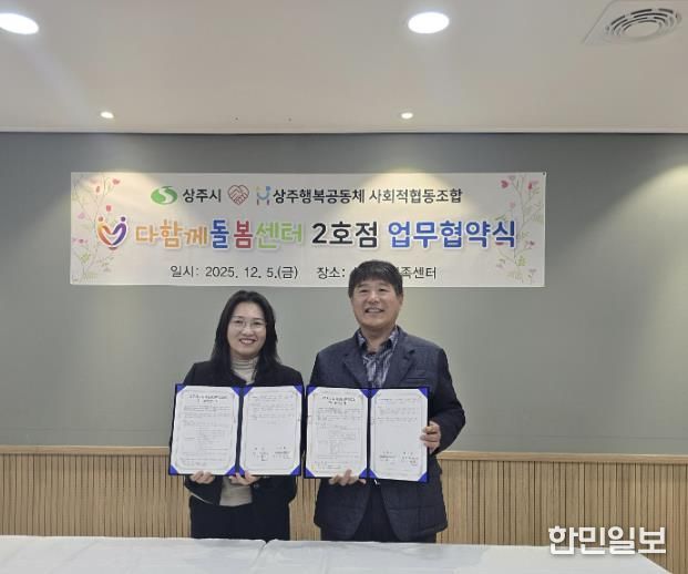 한민일보 서울포커스 김봉순 기자 | 상주시는 12월 5일 상주시가족센터에서 상주시 다함께돌봄센터 2호점 위수탁 협약식을 개최하고, 수탁기관으로 상주행복공동체 사회적협동조합을 최종 선정하여 협약을 체결했다.