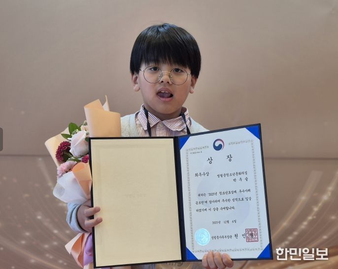 한민일보 서울포커스 진광성 기자 | 영월군청소년문화의집 소속 박우슬(옥동초 3) 청소년이'2025년 청소년성취포상제 우수사례 공모전'자기도전 부문에서 성평등가족부 장관상(최우수상)을 받는 영예를 안았다.