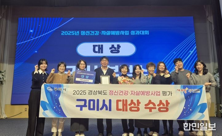 한민일보 서울포커스 김봉순 기자 | 구미시는 지난 8일 열린 ‘2025년 경상북도 정신건강·자살예방사업 성과대회’에서 대상을 받았다. 지역사회 안에서 꾸준히 이어온 마음 돌봄 정책이 실질적인 변화를 이끌어냈다는 점에서 의미가 크다.