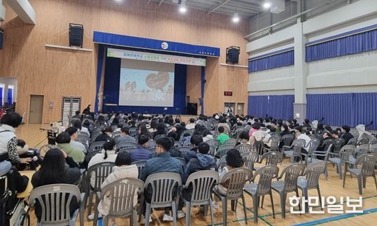 한민일보 서울포커스 김은금 기자 | 김해시는 9일 김해은혜학교에서 장애아동을 대상으로 샌드아트를 활용한 환경교육을 실시했다.