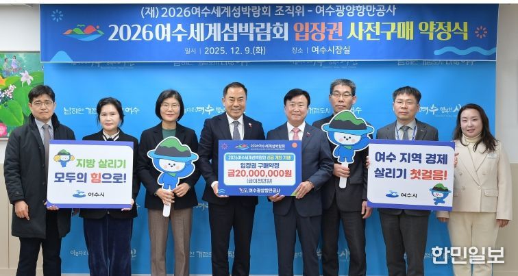 한민일보 서울포커스 임광현 기자 | (재)2026여수세계섬박람회조직위원회는 지난 9일 여수광양항만공사가 섬박람회 성공개최를 응원하며 입장권 2천만원의 구매약정을 체결했다고 밝혔다.