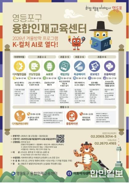 최호권 영등포구청장은 “흥미롭게 체험하며 역량을 기를 수 있는 알찬 겨울방학 프로그램을 마련했다”라며 “변화하는 환경에 맞춰 아이들의 성장을 돕는 다양한 융합 교육을 지속적으로 확대하겠다”라고 전했다.