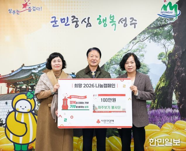 한민일보 서울포커스 임경복 기자 | 성주군 마주보기봉사단(회장 박미경)는 12월 11일 관내 취약계층을 위한 성금 100만 원을 기탁하며 희망2026나눔캠페인에 동참했다.