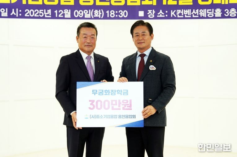 한민일보 서울포커스 진광성 기자 | (사)중소기업융합 홍천융합회는 12월 9일 K컨벤션웨딩홀 3층에서 열린 ‘2025년 중소기업융합 홍천융합회 송년회’에서 무궁화장학금 300만 원을 홍천군에 기탁하고, 연탄 3,000장은 (사)이웃에 지정 기탁했다고 밝혔다.