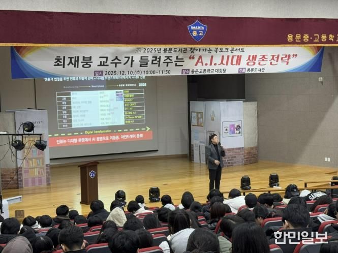 이날 강연에는 용문고등학교 학생 400여 명이 참여해 디지털 대전환 시대를 살아갈 청소년들의 미래 역량을 키우는 기회를 가졌다.