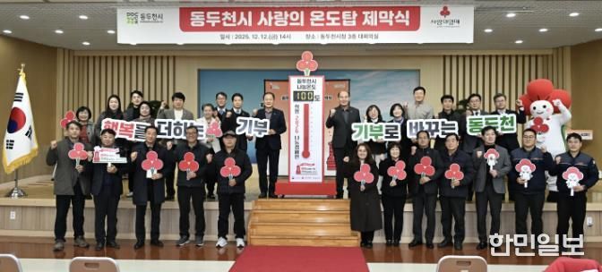 한민일보 서울포커스 임경복 기자 | 동두천시는 지난 12월 12일 동두천시청 대회의실에서 동두천시장을 비롯해 동두천시의회 의장 및 의원, 경기북부 사회복지공동모금회 관계자, 기업·단체·시민 등 40여 명이 참석한 가운데 ‘사랑의 온도탑’ 제막식을 개최했다.