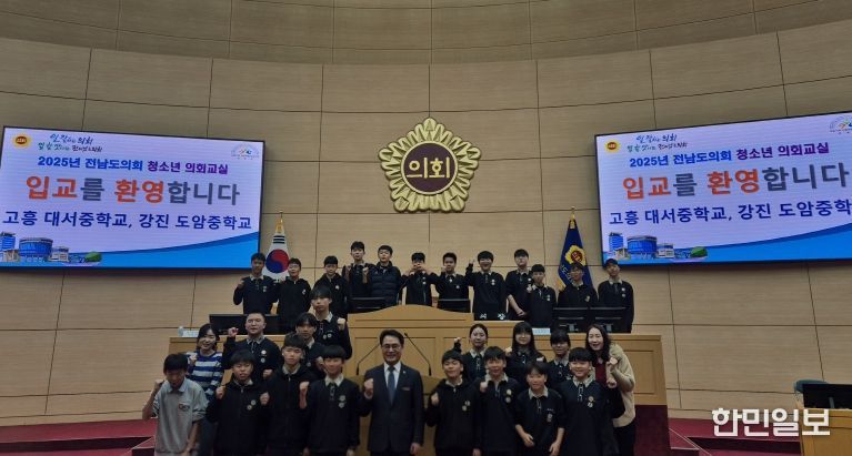 한민일보 서울포커스 임경복 기자 | 전라남도의회 송형곤 의원(더불어민주당, 고흥1)은 지난 12월 11일 전라남도의회 본회의장에서 열린 2025년 제26회 '청소년 의회교실'에 참여하여 고흥 대서중학교 학생들과 소통하고 격려하는 시간을 가졌다.