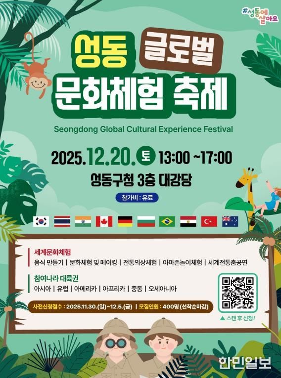 한민일보 서울포커스 임광현 기자 | 서울 성동구가 오는 12월 20일 오후 1시부터 5시까지 성동구청 3층 대강당에서 녩성동 글로벌 문화체험 축제’를 개최한다고 밝혔다.