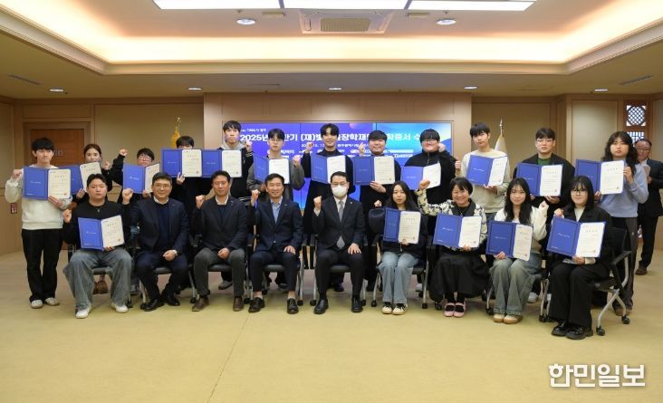 한민일보 서울포커스 임경복 기자 | (재)빛고을장학재단은 17일 시청 비즈니스룸에서 ‘2025년 하반기 빛고을장학재단 장학증서 수여식’을 열고, 대표로 참석한 학생 20명에게 장학증서를 전달했다.