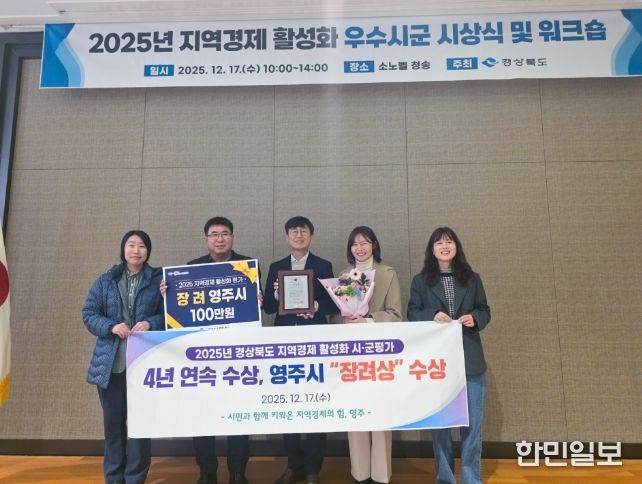한민일보 서울포커스 김봉순 기자 | 영주시는 지난 17일 소노벨 청송에서 열린 ‘2025년 경북도 지역경제 활성화 평가 우수 시·군 시상식’에서 ‘장려상’을 수상했다.