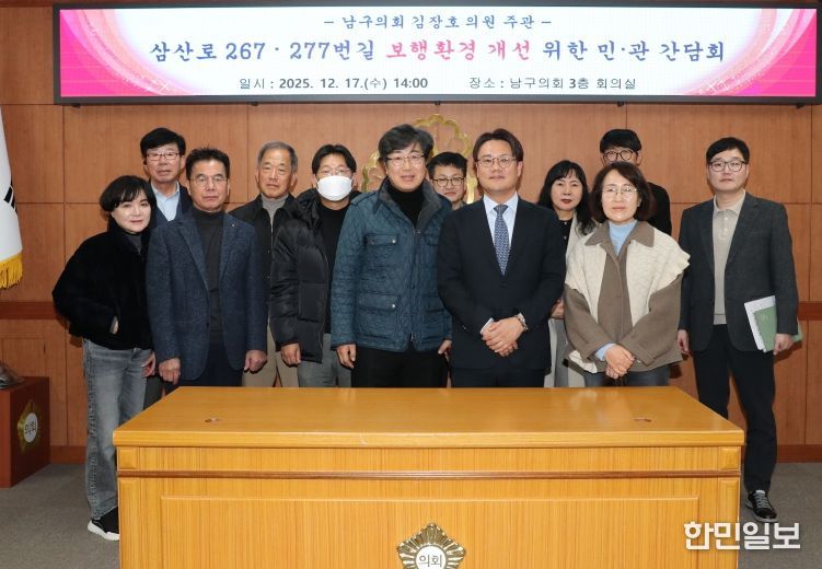 한민일보 서울포커스 기자 | 울산 남구의회 김장호 의원(국민의힘, 삼산동·야음장생포동)은 17일 3층 의회 상황실에서 삼산로 267·277번길 건물주협의회, 관계부서 공무원 등 15명이 참석한 가운데 보행환경 개선 및 K-뷰티 특화거리 조성 관련 간담회를 개최했다.