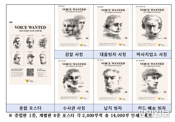 또한, 각 수배 전단 포스터 내에는 정보무늬(QR) 코드를 삽입해 국민이 정보무늬(QR)를 접속하면 실제 보이스피싱 범인의 목소리와 해당 수법을 알 수 있는 영상을 확인할 수 있고 보이스피싱 목소리를 바로 제보할 수 있도록 했다.