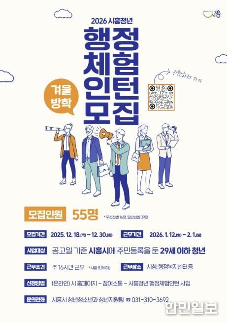 한민일보 서울포커스 유현민 기자 | 시흥시는 청년들에게 행정 현장 체험과 단기 소득 활동 기회를 제공하기 위해 ‘2026년 일반분야 겨울방학 행정체험인턴 사업’을 오는 2026년 1월 12일부터 2월 1일까지 3주간 운영한다.
