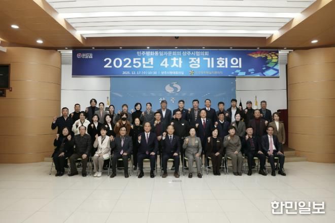 한민일보 서울포커스 김봉순 기자 | 민주평화통일자문회의 상주시협의회는 12월 17일 오전 10시 30분 상주시청 대회의실에서 상주시장(대행기관장), 자문위원 등 50명이 참석한 가운데 ‘화해·협력의 남북관계 재정립을 위한 정책방향’을 주제로 2025년 4분기 정기회의를 개최했다.